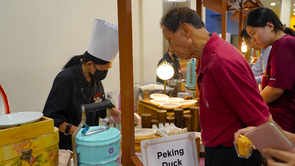活动现场的布置也非常精致,灯笼高挂,智造了浓厚的节日氛围。自助晚餐区香气四溢,现场烹饪的美食吸引众多宾客驻足品尝,笑语满堂。互动游戏区也热闹非凡,无论是 “月宫投壶” 还是 “月饼运送大挑战” 等活动,都广受欢迎,欢声不断;老少皆宜的 “灯笼绘画与猜灯谜” 则成为亲子家庭的欢乐角落,现场其乐融融,充满温情。